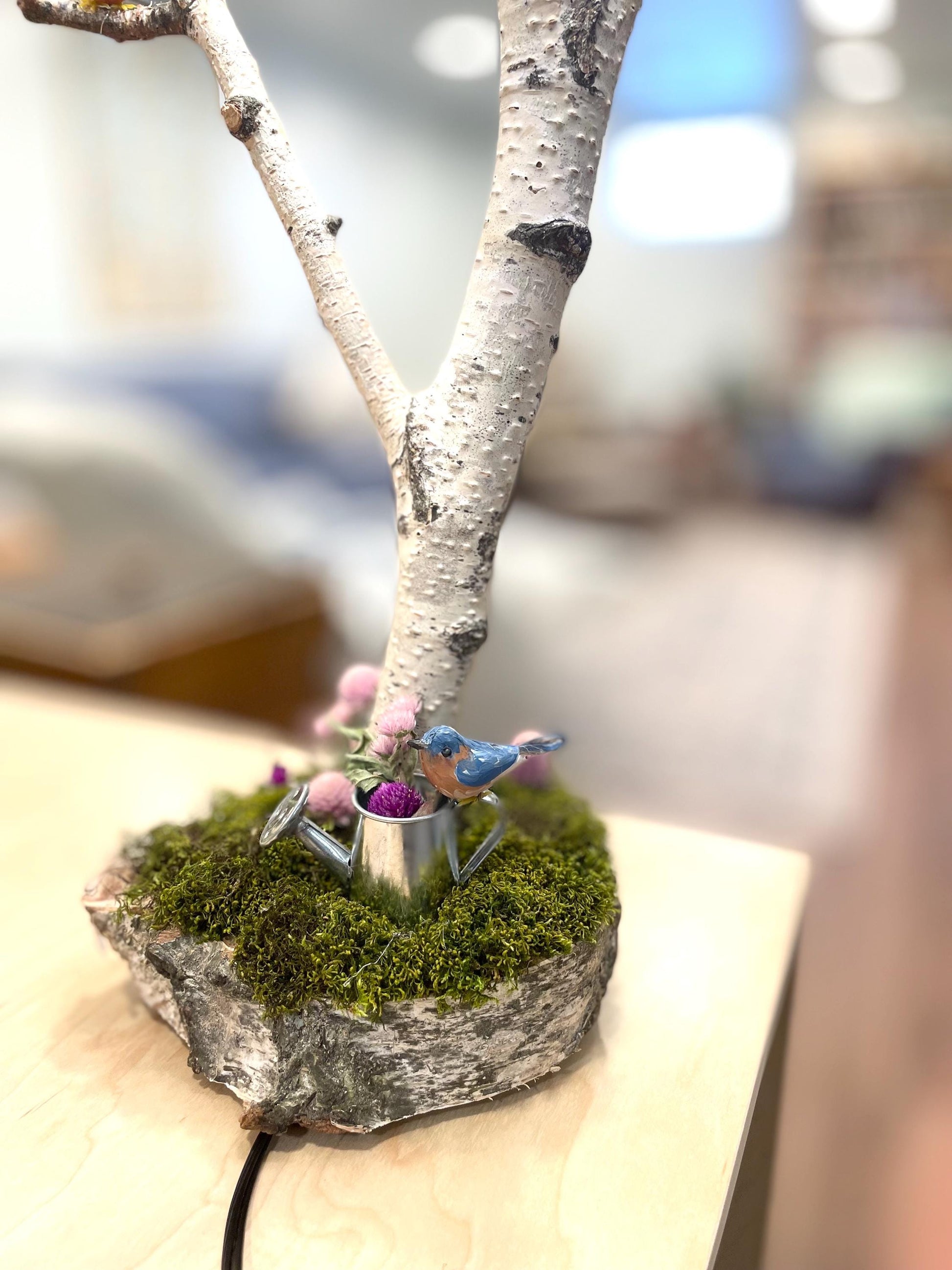 Fully functional table top lamp is a sure conversation piece for your home! I work with each customer to create a one of a kind lamp just for you, with varying options for height, flower colors, bird types, and more! Picture is for example only. Lampshade not included.