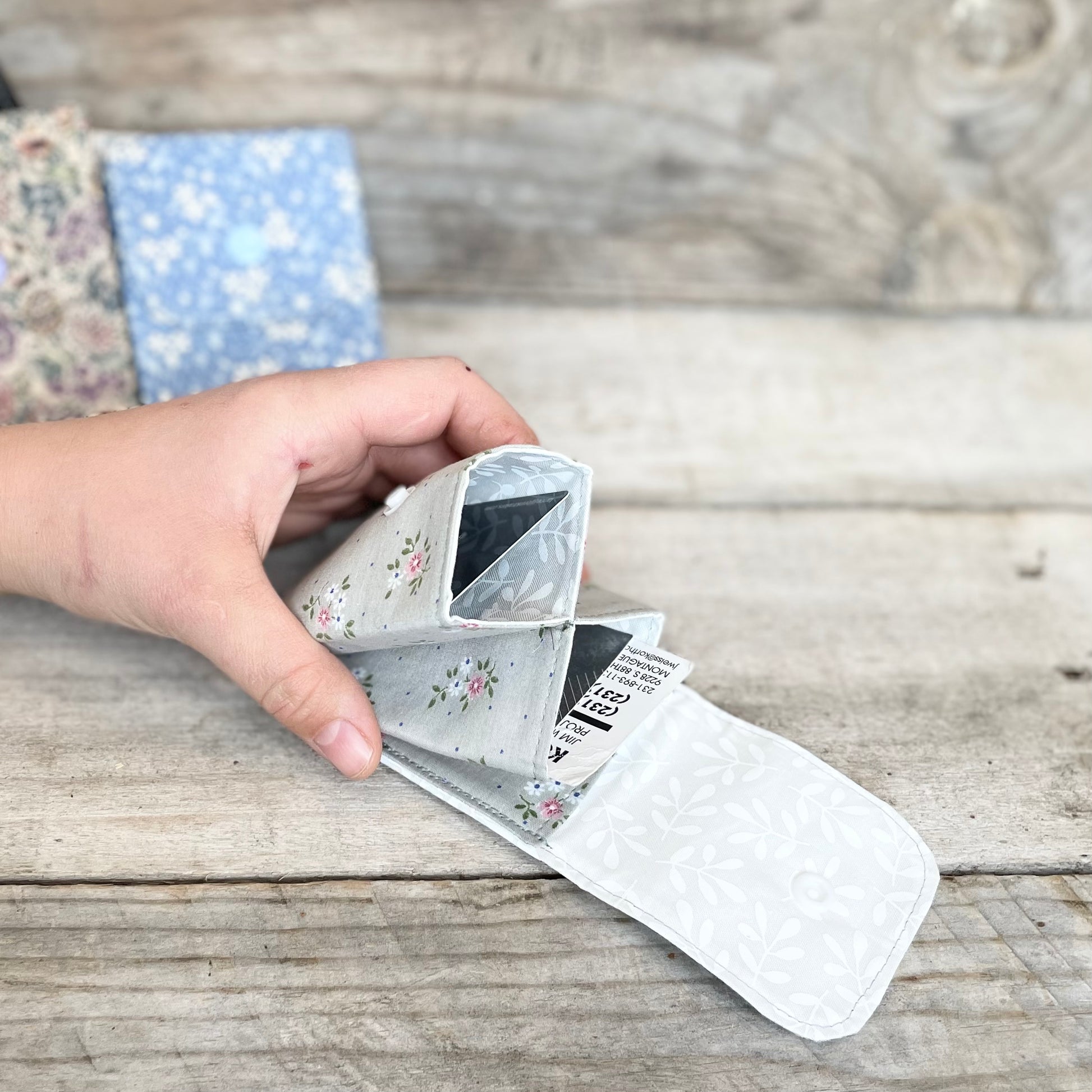 Dimensions are 3" Wide x 4" Tall when pouch is closed, perfect size for most credit, debit, and gift cards. Strong plastic snap ensures that nothing can get out without undoing the button first!