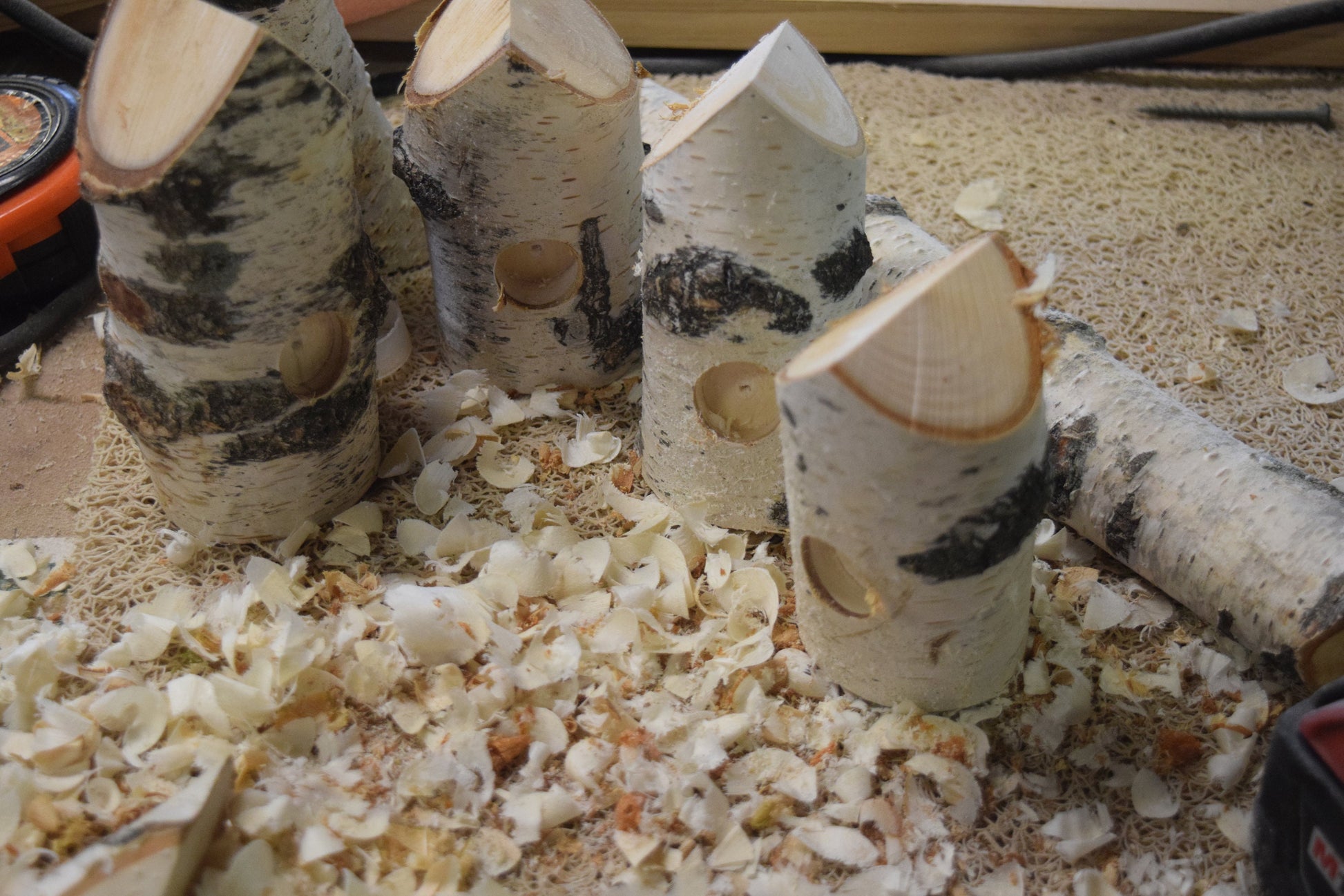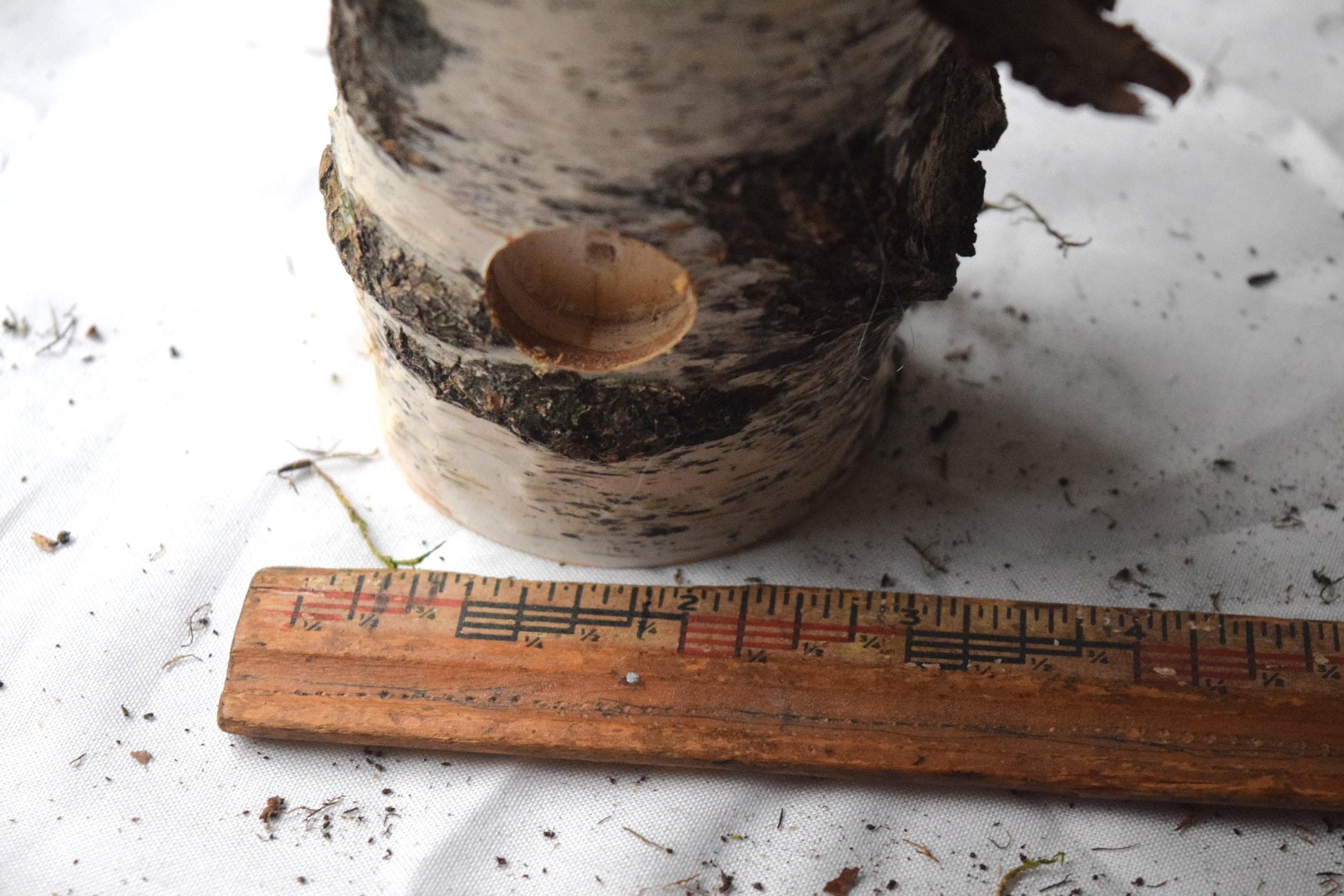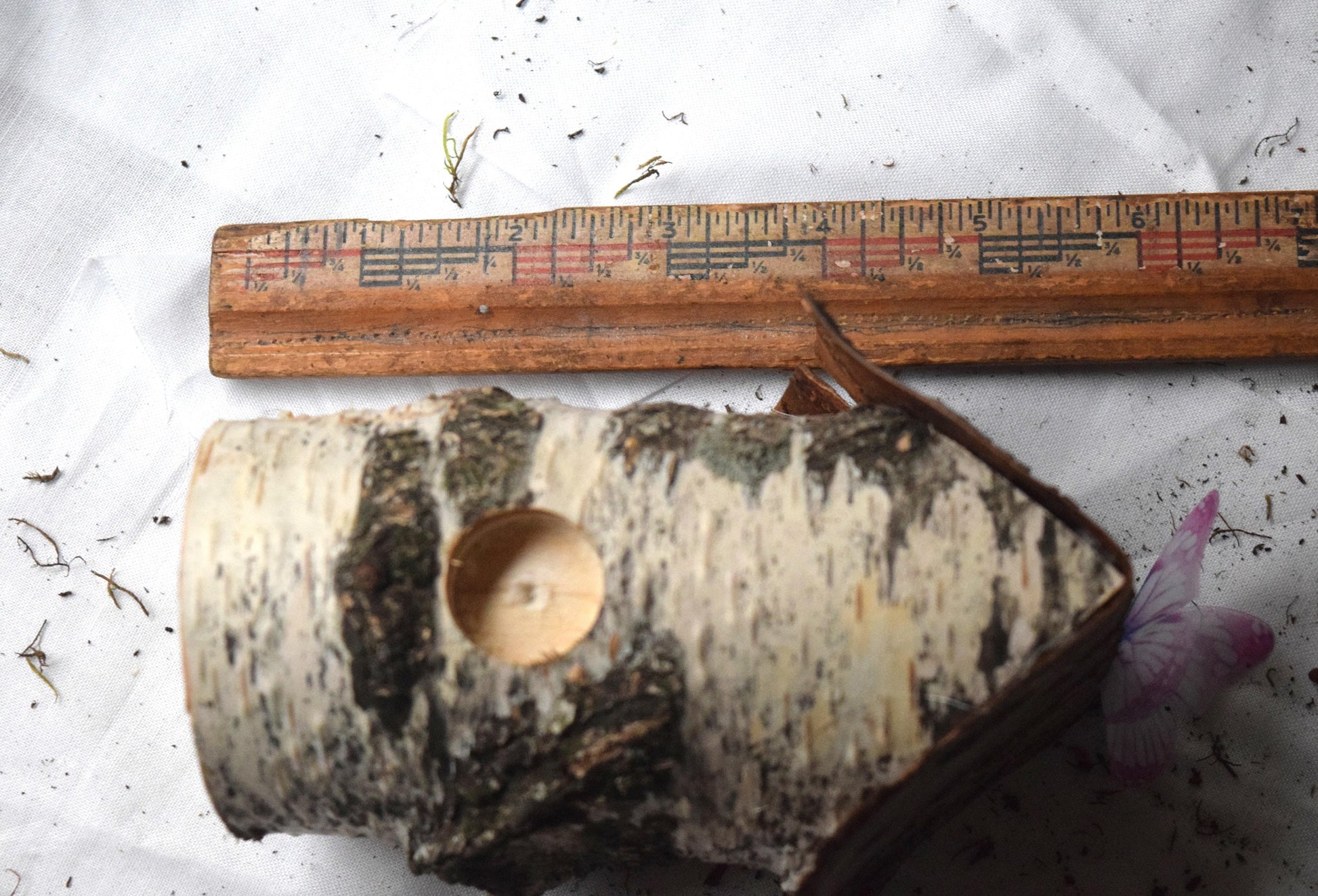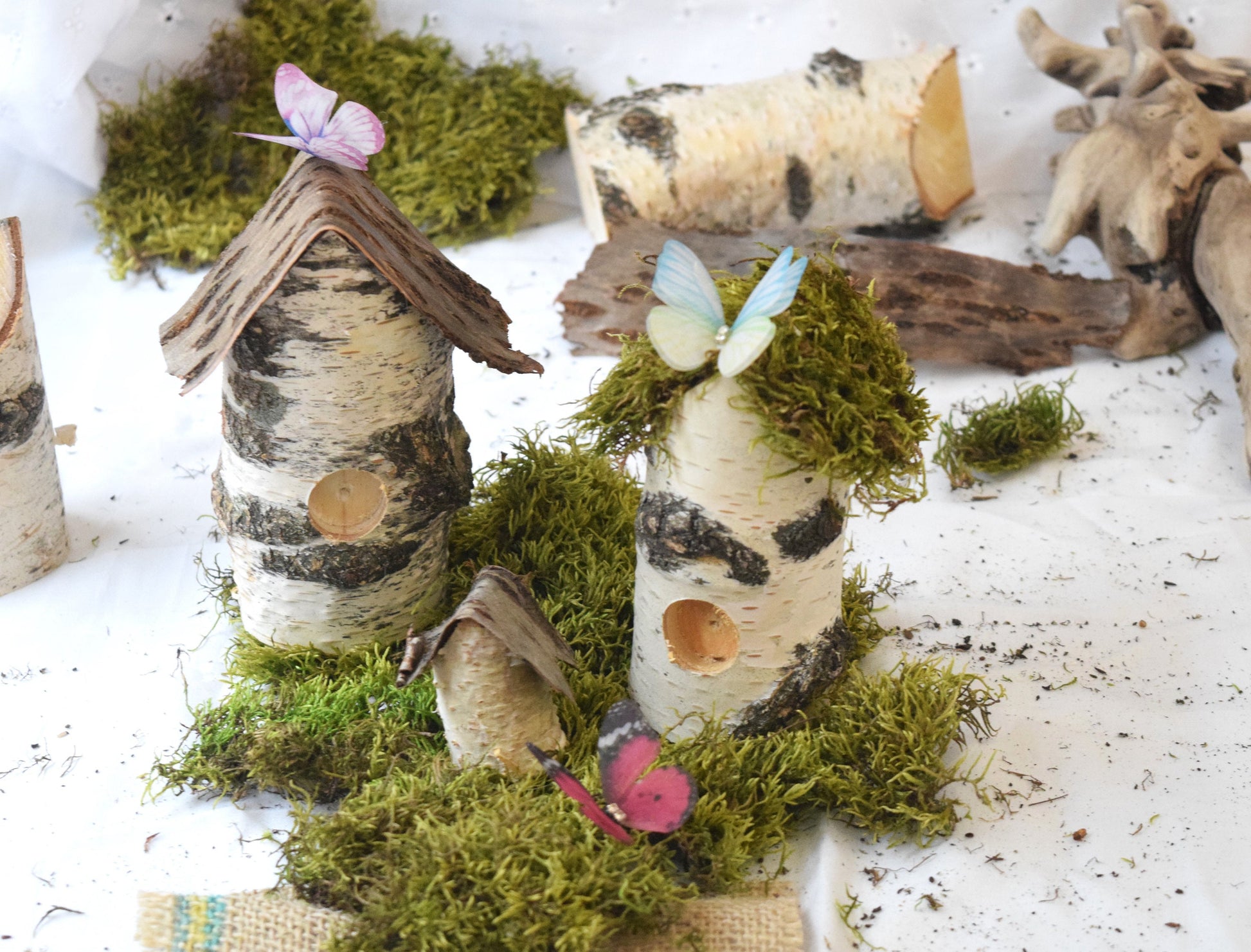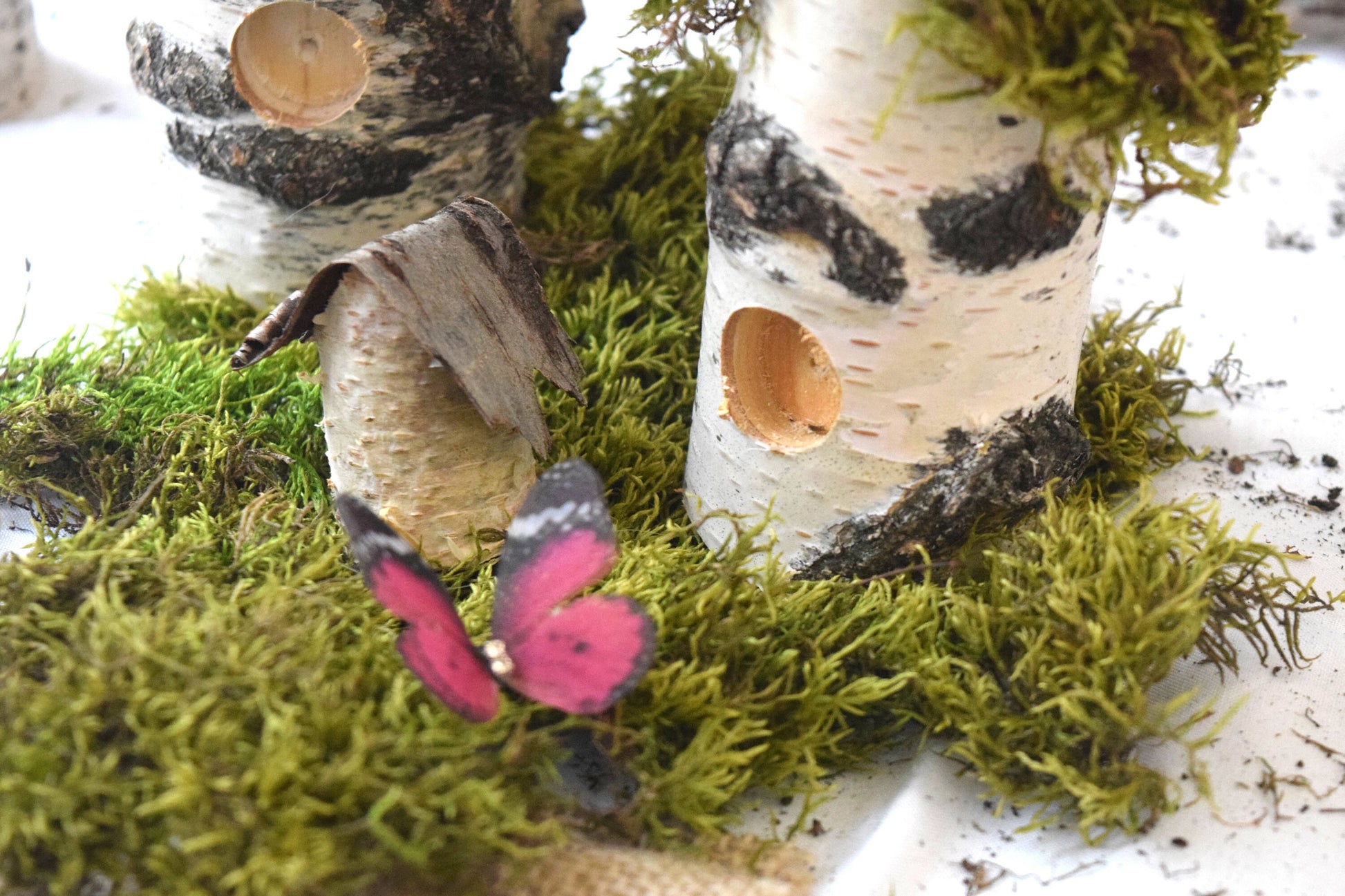 Naturally fallen birch branches supplied the birch wood for these rustic branch birdhouses, making a great unique gift! Perfect home for the included gauze butterfly. Birch wood, butterfly color, and birdhouse size all vary but average size is 3" diameter, 5" tall.